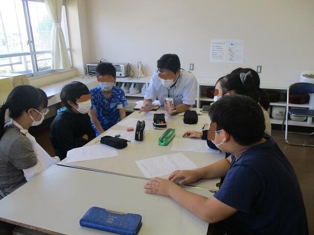 教育委員会学校地域連携推進課の協力を得て、社会人の方と意見交流をする機会を得られました。今回は、小学生の仲良しグループがラインでつながったが、返信がないことから仲間外れにされそうな場面について、それぞれの思いや考えを話しました。5~6人グループに大人1名が加わって討議した後、どんな意見があったかを全体で交流し合うなど2コマが熱気を帯びていました。貴重な機会をありがとうございました。