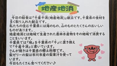 本日は、『千産千消』献立です。鯵のさんが焼き、ちょうどよい厚さで塩味もよくきいていてご飯がよく進みます。