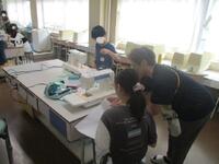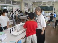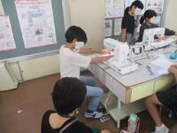 ここでも、引き続き学習支援ボランティアの方にの支援もいただいて、エプロンのミシン縫いを頑張って行っていました。5年生、裁縫の技能が大分上達しました。