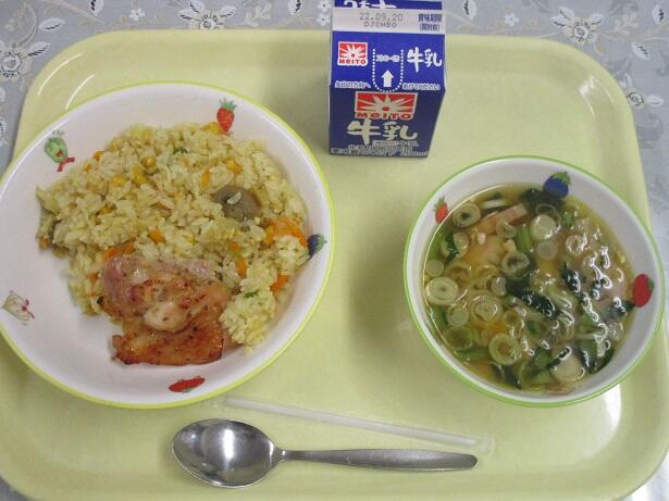 メキシカンライス、鶏肉のハニーマスタード焼き、白玉スープ、牛乳