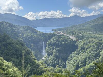13:30 明智平のロープウェイで展望台へ。中禅寺湖と手前に明日行く華厳滝が見えます。絶景かな!