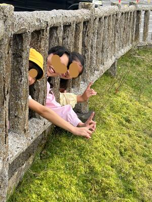 展望台から降りてくる人を待つ間に、変なグループ発見!何しているの?