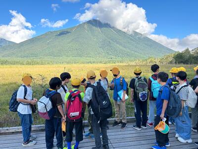 15:20 戦場ヶ原入口にあたる赤沼で木に隠れた男体山をバックに写真を撮って、またバスに戻って湯滝へ行きます。体調不良なく、みんなで楽しんでいます。