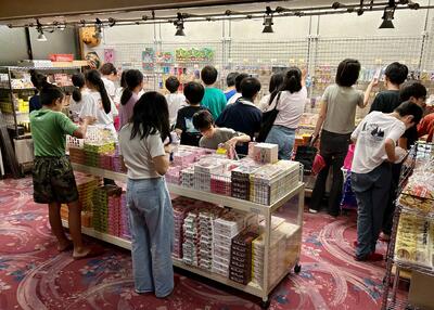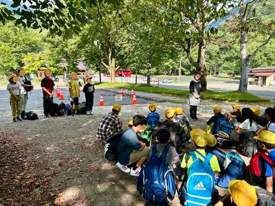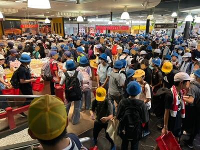 13:00 昼食後にお土産タイム。しばらく平田小だけでしたが、食事を済ませた学校が続々と押し寄せてこんな感じに。でも黄色い帽子の学校はほかになかったためわかりやすい!計画的に買うことができたでしょうか?