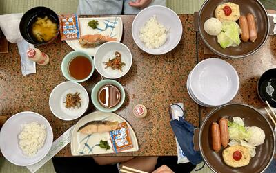 7:00 朝食です。部屋からの健康観察報告では具合の悪い子はいません。