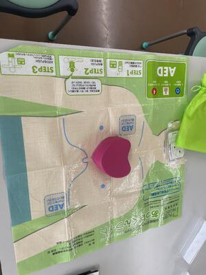 PTAの方が心肺蘇生法の講座を開きました。ハートのスポンジを押すとキュッと音が鳴る仕組みになっています。これが結構な硬さで、うまく押せないと音が鳴りません。心肺蘇生法やAEDの使い方を知っているだけで、人の命を守れる可能性が広がります。子ども達にもよい体験授業になるのではと思いました。