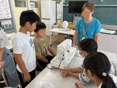 5年生の家庭科でミシン縫いを行います。ミシンがない家庭も少なくないはず。興味津々ではあるものの、恐々といった感じです。今日はボビンに糸を巻き付けるところまで行いました。お手伝いに来てくださった方が4名。担任にも心強い助っ人です。