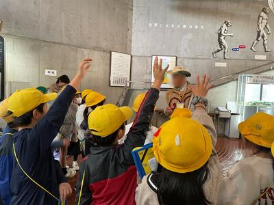 歴史考古博物館では、学校運営協議委員(平田小卒業生)の小郷さんがコククジラや堀内貝塚について3年生にわかりやすいように教えてくださいました。