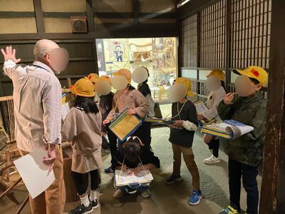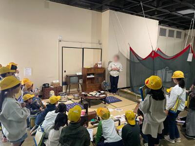 館内2階では、昭和時代のちょっと昔の道具の展示品を見学しました。子ども達は「社会の教科書で見たことがある!」と声をあげていました。