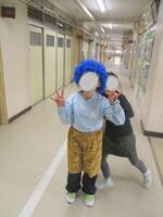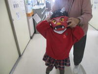 今日は、1年生の教室などにいろいろな鬼が登場したようです。1年生は、新聞紙でつくった豆で、教室に入ってきた鬼を退治していました。