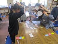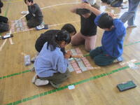 今日の昼休みは、2~4年生の部、体育館では札40枚、図書室では札60枚での練習会が行われました。1枚でも多くとろうと張り切っている子供たち、今日も、どちらの会場も熱気があふれていました。図書委員会児童も、進行や見守りをよく行っていました。