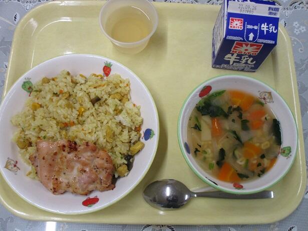 メキシカンライス、鶏肉のハニーマスタード焼き、ABCスープ、レモンゼリー、牛乳