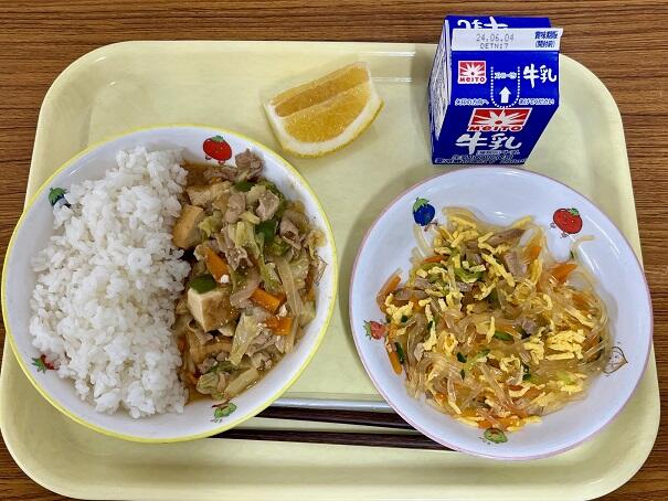 ごはん、回鍋肉、バンサンスー、美生柑、牛乳