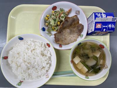 ごぼうサラダは、きゅうり、レタス、にんじん、コーンがマヨネーズで和えてあり食べやすくなっています。みそ汁は、里芋がちょうどよい大きさでほくほく感を味わうことができます。生姜焼きには、やっぱり白ご飯。豚肉に味がしっかりしみていて美味しいです。いつも元気な校長先生ですが、昨日は冗談を言う元気もなく心配でした。今日は体調不良でお休みです。ちゃんとご飯を食べられているとよいのですが・・・急に寒くなってきましたので、子ども達の様子をこまめに観察し体調の変化を見逃さないようにしたいと思います。
