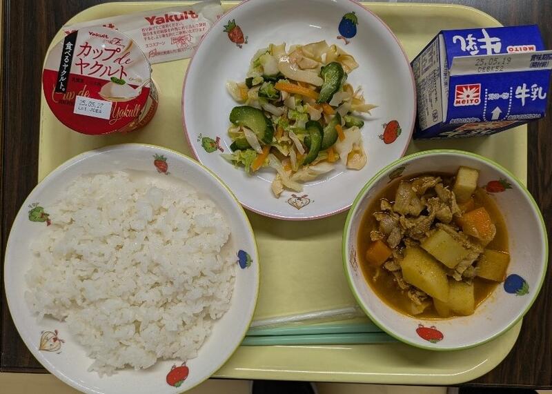 ご飯 インド煮 いかくんサラダ カップdeヤクルト 牛乳