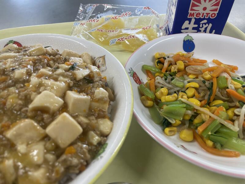 麻婆丼  ナムル  冷凍パイン  牛乳