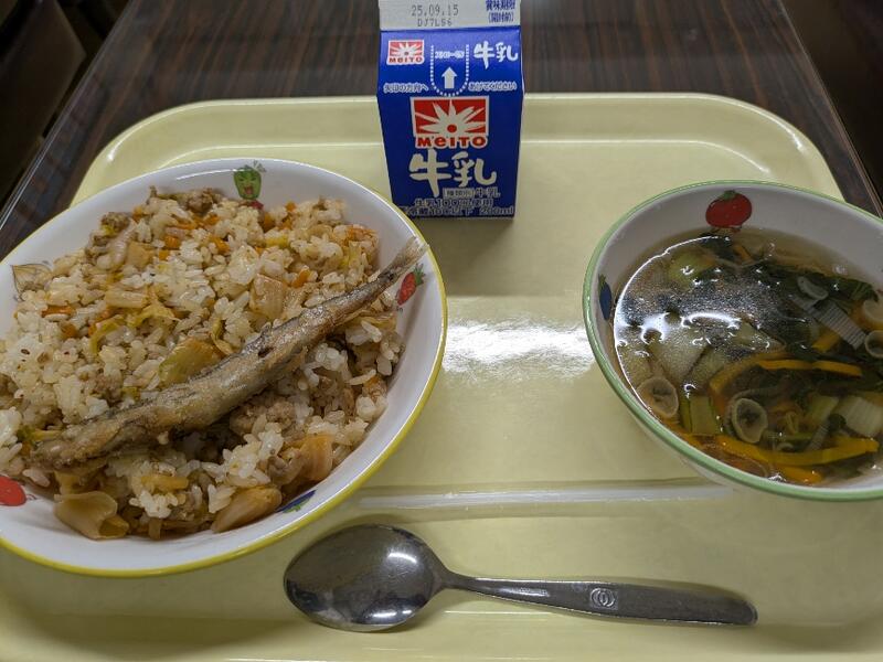 キムチごはん  春雨スープ  ししゃものからあげ  牛乳