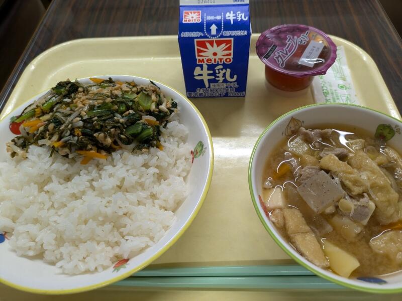 ご飯  納豆和え  豚汁  ぶどうゼリー  牛乳