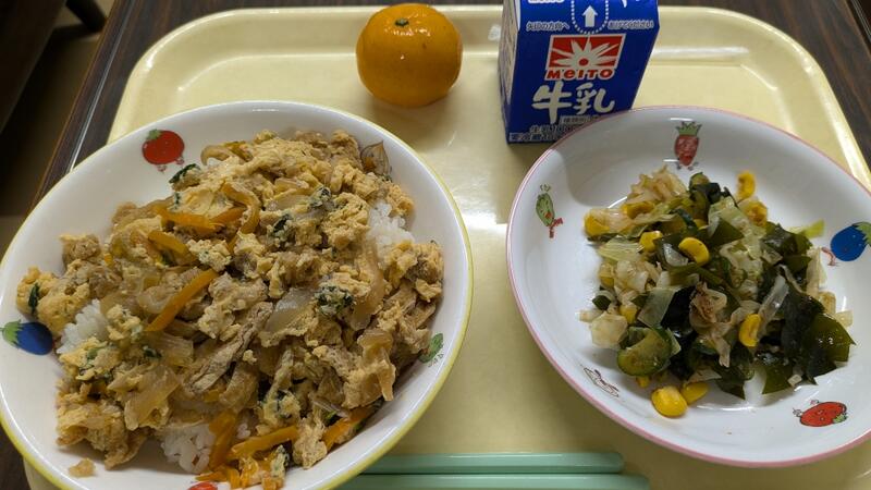 あぶたま丼  和風サラダ  冷凍みかん  牛乳
