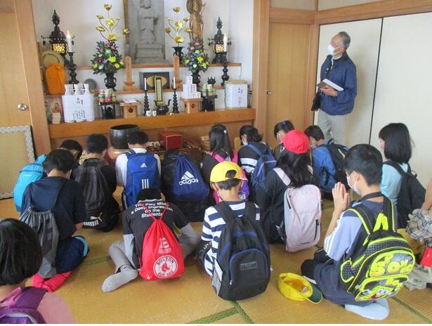 6年生が地域の歴史案内人(小郷さん)と一緒に、クラスごとに時間を分けて地域の歴史を見て歩きました。郵便局裏の聖徳太子堂では中まで入れされていただいてお願い事。外環道脇で遺跡が発掘されたことを伺ったり、菅野駅歩道橋から平田緑地やクロマツを望んだりして、諏訪神社へ。歩いて回らないとわからないことばかりです。
