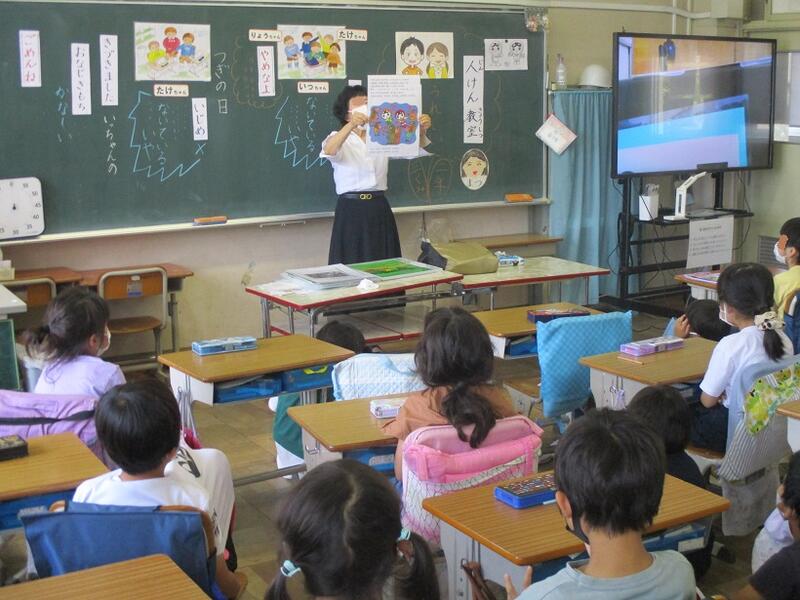 この6月は2年生を対象にした人権教室。市川市人権擁護委員会の方を講師にお招きして、いじめについて考えました。素直な発言がたくさん聞かれました。2学期は4年生で実施します。