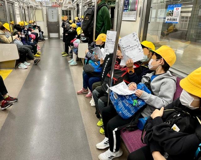 菅野駅から高砂乗り換えで、北総線に乗って大町へ。まずは、ありのみコースでグループ活動です。駅員さんが調整を図ってくださり、車内は座れます。9時半に大町駅到着予定です。