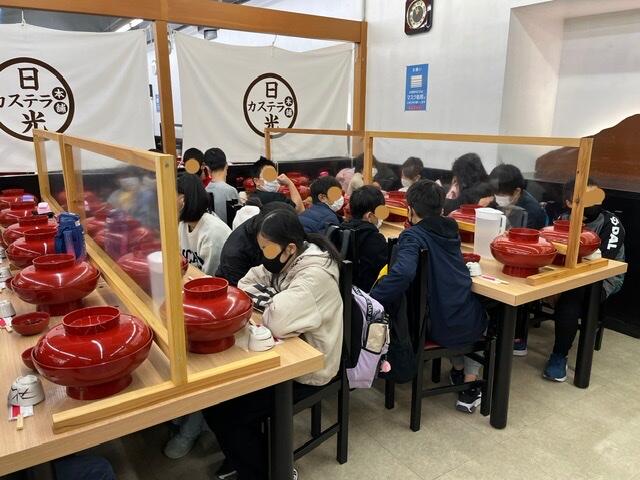 13:45 江戸村を後にして学校に帰ります。具合の悪い子はひとりもいません!
