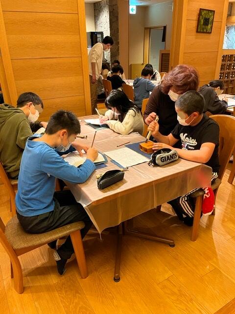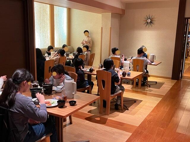 夕飯の時間です。食べ終わると、お風呂とお土産タイムが控えています。