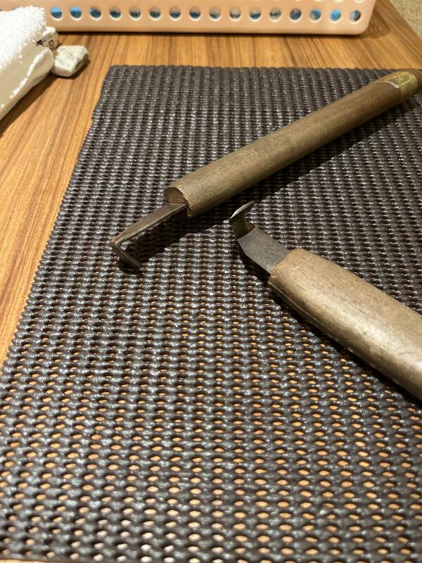 もうじき20時になりますが、日光彫りに取り組んでいます。独特の彫刻刀に苦戦しています。
