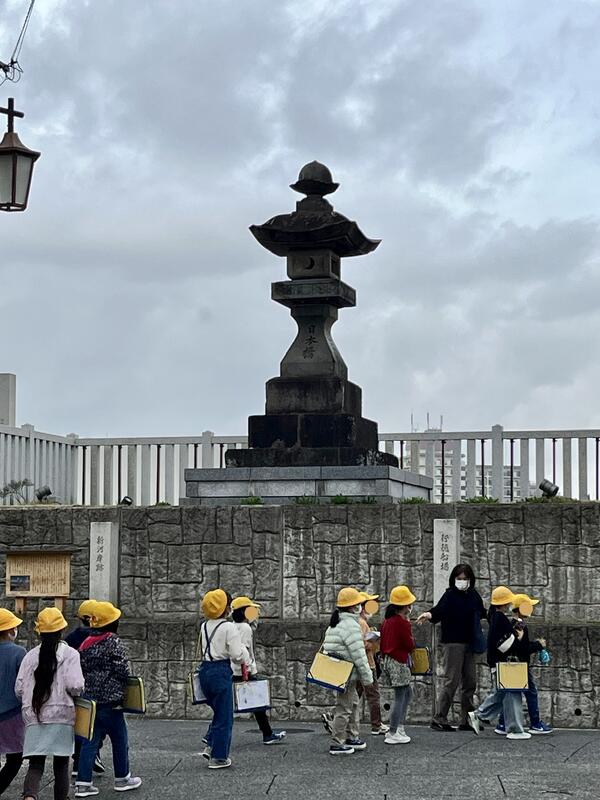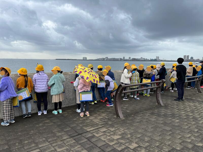 8:50 出発する頃にちらちらと降り出した雨。今日の行程は、行徳港、常夜灯、現代産業科学館、歴史博物館です。主に社会科学習に生かします。