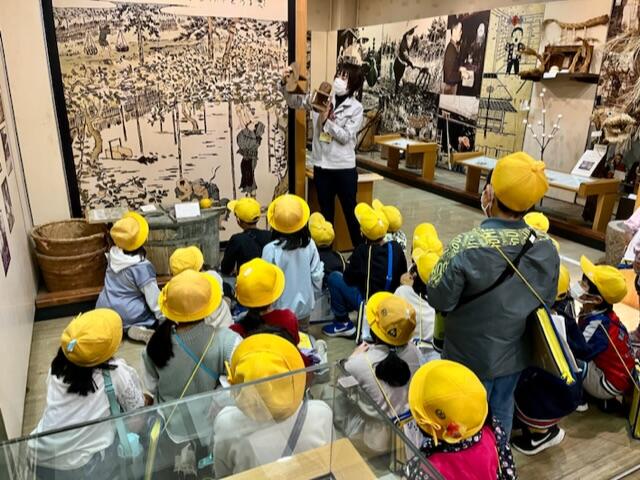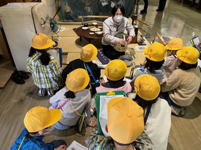 13:00 歴史博物館で、企画展『昔のくらし』の説明を聞いています。