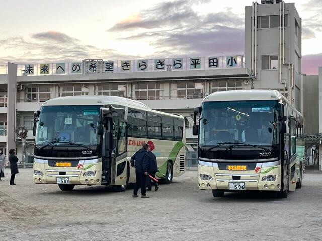 1月11日(水)午前7時、約70人を乗せたバスが、長野県高峰高原スキー場に向けて出発しました。徐々に明けていく空の変化、こうこうとした月の光もきれいです。すてきな3日間になりますように!