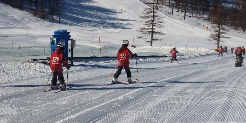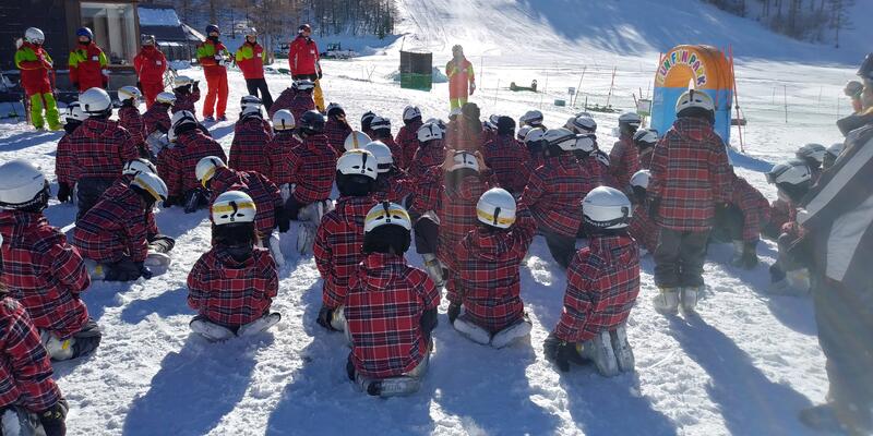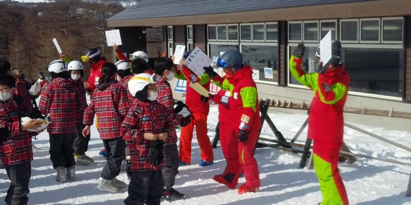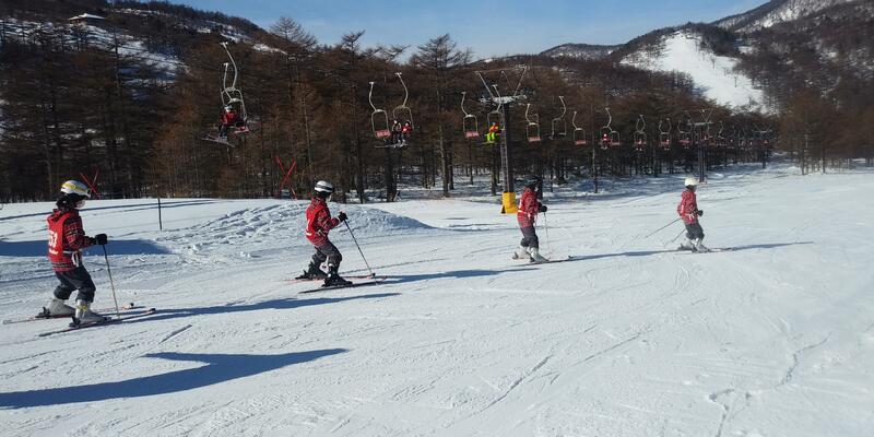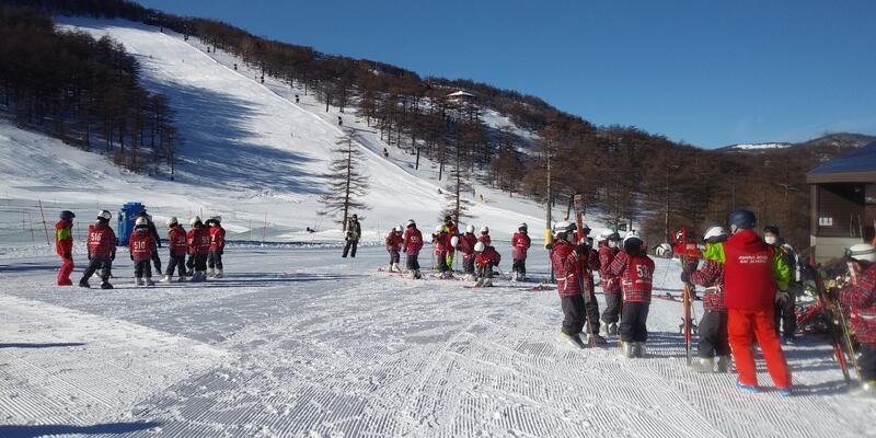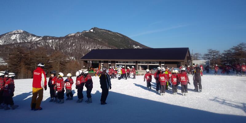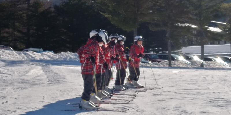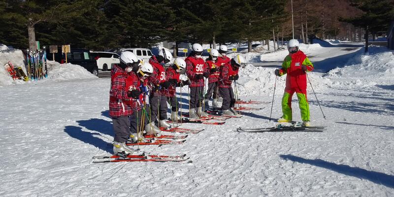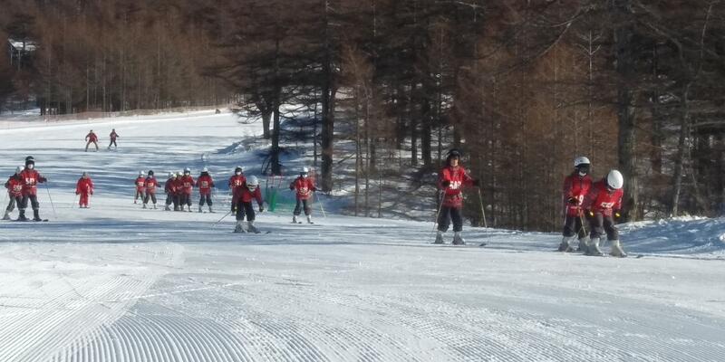 最後日も晴れ渡る空の下、スキースクールが始まりました。