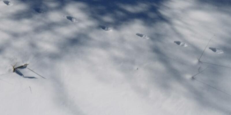 リフトに乗るグループも増えてきました。脇道に見える獣の足跡はタヌキかキツネか…