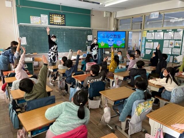 2年生は「ミルク教室」をクラスごとに行いました。牛乳ができるまでの過程も知りながら、なぜ学校で牛乳が毎日提供されるのかを考えるきっかけになりました。