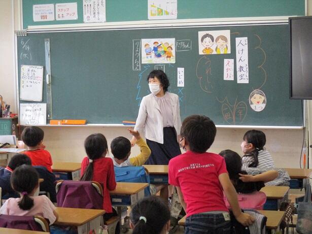 市川市体育指導員の先生が今日を含めて3回来校し、経験の浅い先生方に体育指導を見せてくれます。それに倣って担任もこれに続く指導を行います。6年生は「跳び箱運動」、1年生は「マット遊び」、3年生は「チームリレー」でした。運動を理解し、友達と話し合って夢中になって取り組む姿が見られました。