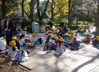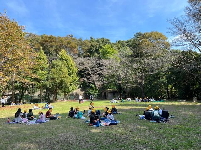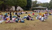 12:40 どんぐり拾いをして、やっとお弁当タイム。すっかりお腹が空いていたので、みんなもぐもぐ頬張っています。
