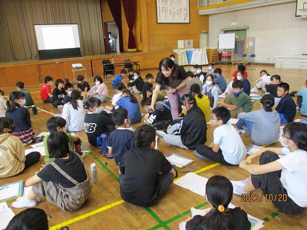 お話を聞いて「お金を稼ぐ」「好きなことをする」から「人の役に立つ」「みんなで作り上げる」と自分のことから社会・他人・周囲人のことへと思考が広げられたことに自分たちで気づき、表立っていない職業がたくさんあることを学ぶことができました。