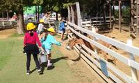 12:30 クラス毎に餌やり体験。馬、羊、山羊の中から選んだ動物におやつをどうぞ。