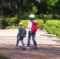 10:20 四年生が大町へ自然観察に来ています。グループごとにどんな発見をしてくれるかな?