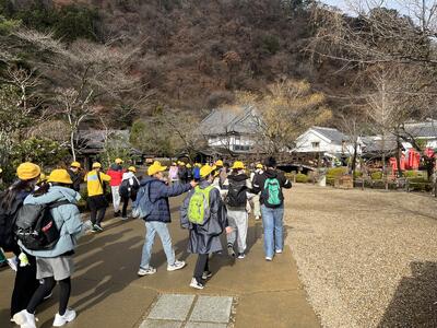 8:40 一段と寒い曇り空ですが、鮮やかな黄色いバスにみんな元気良く乗り込み、出発しました。