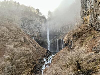 15:15 いろは坂を上って、いざ華厳滝へ!靄がかかってきて何にも見えない。そして見えるのは、枝、枝、枝。景色を楽しむのは明日の下りになります。