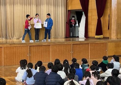 今日12月22日(金)は終業式。明日から17日間の冬季休業に入ります。校長の話の後、冬休みの生活上の注意について4年生のロクレンジャーがステージ上に登場しました。赤・黄・青・黒・白・金レンジャーが、注意を呼びかけます。事故やけが、病気に気をつけて1月9日にまた会いましょう!