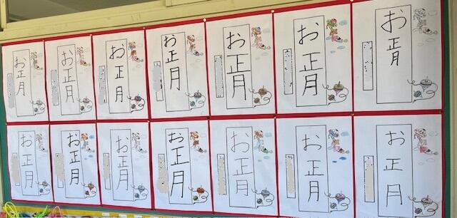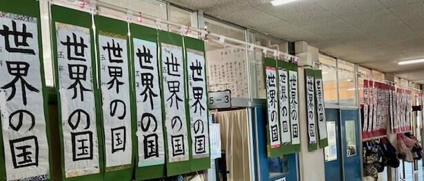 今日1/22から、新年に入って取り組んだ書き初めの作品展示が始まりました。展示自体は2/2までですが、保護者の方が鑑賞できるのは今週金曜日1/26までです。朝は8:15~9:15、放課後は15:00~16:00としています。