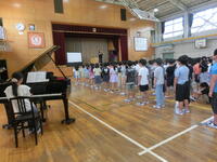 校長からは、夏休み前にめあてを立ててやってみて、達成感や自信につなげよう、という話を振り返り、めあてを立てて努力した人、めあてを達成できた人を挙手で聞きました。