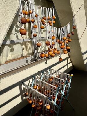 秋晴れの陽を受けて、261個の柿たちは干し柿街道まっしぐら!