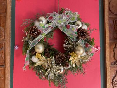 クリスマスリースのプレゼント!昨日、学校運営協議員の方(本八幡駅近くのお花屋さん)より、ちょっと早いクリスマスプレゼントをいただきました。職員玄関前は、一気にクリスマスモードになっています。平田小のことをいつも気にしてくださり、本当にありがたいです。