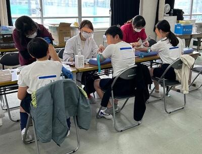 5年生の希望者を対象とした「すこやか検診」が行われました。身長・体重・血圧・血液などを調べて現状を知り、生活習慣病を予防しようというもの。初めての血液検査だったのでしょう。「針を刺された時、痛かったぁ」と教えてくれました。