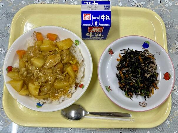 今日の給食は「当たり!」です。牛乳の飲み口の紙が上紙にくっついて、きれいに剥がれているのがわかりますか?些細なことで盛り上がり、誰の心にも思い出の一つとして残るのが給食の良さです。本日と明日は「給食試食会」でそれぞれ30名ほどの保護者の方が同じメニューをいただきます。薄い衣のアジフライ、パン粉の香ばしさが皆さんにも評価していただけるといいなぁ。