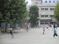 昨日までは、熱中症指数が高く外で遊べませんでしたが、二学期初めて、休み時間に思いっきり外で遊ぶことができました。たくさんの子供たちが校庭で思い切り体を動かし、楽しんでいました。